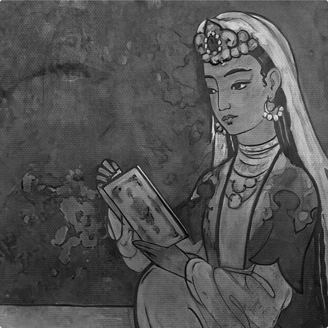 Navoiy ko‘ngli suvratxonasi chok bo‘ldi sartosar,Chu anda jilva berdi ul nigora naqshbin suvrat.
